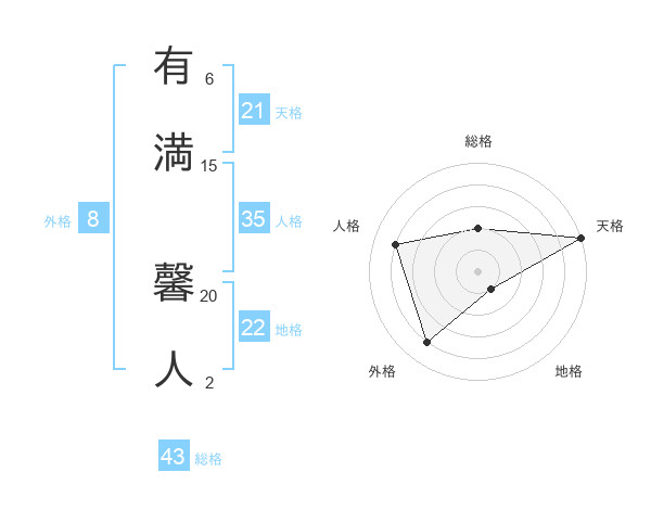 有満 馨人さんの天格は21画の5点!