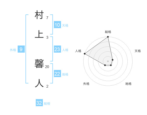 村上 馨人さんの総格は32画の5点!