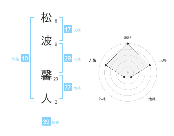 松波 馨人さんの総格は39画の5点!