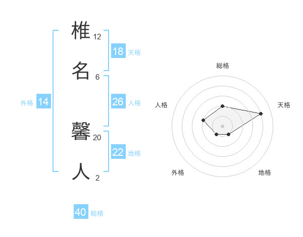 椎名 馨人さんの天格は18画の4点!