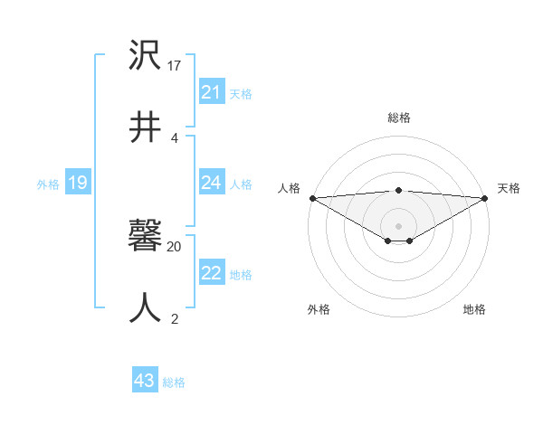 沢井 馨人さんの天格は21画の5点!
