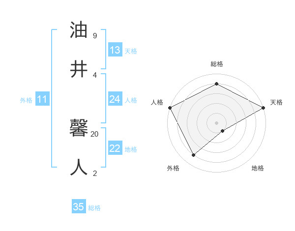 油井 馨人さんの総格は35画の4点!