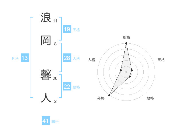 浪岡 馨人さんを姓名の画数から五運を鑑定