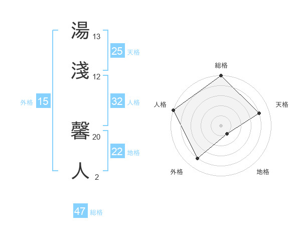 湯淺 馨人さんの総格は47画の5点!