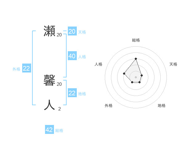 瀬 馨人さんを姓名の画数から五運を鑑定