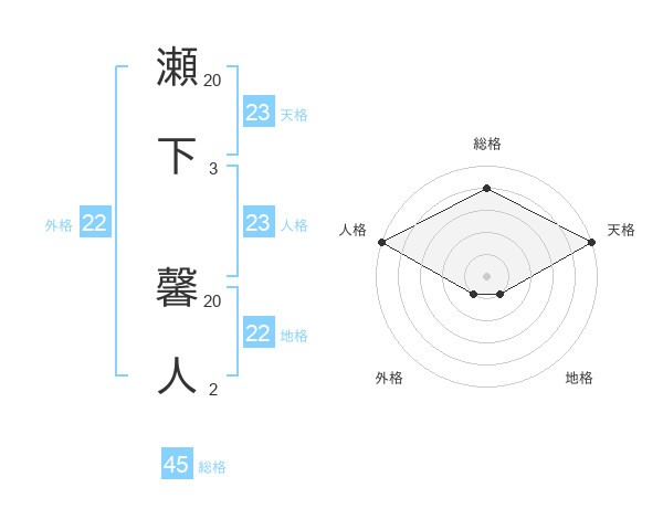 瀬下 馨人さんを姓名の画数から五運を鑑定