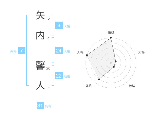 矢内 馨人さんを姓名の画数から五運を鑑定