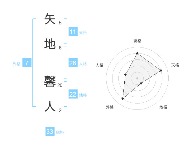 矢地 馨人さんの地格は22画の1点!