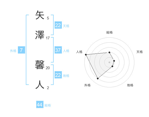 矢澤 馨人さんの天格は22画の1点!