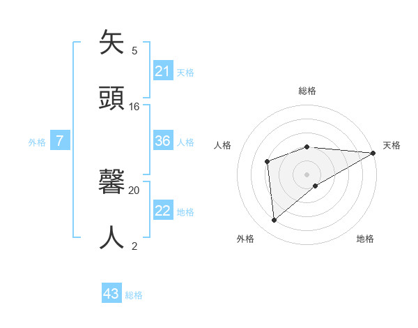 矢頭 馨人さんの天格は21画の5点!