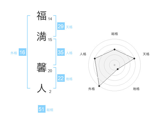 福満 馨人さんの総格は51画の3点!