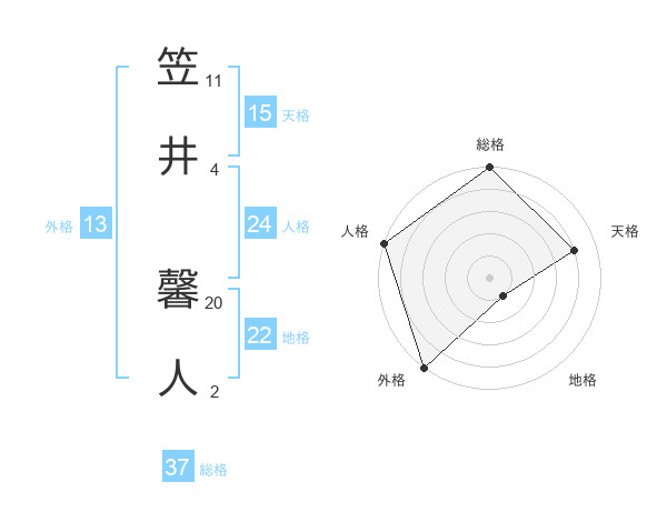笠井 馨人さんの総格は37画の5点!