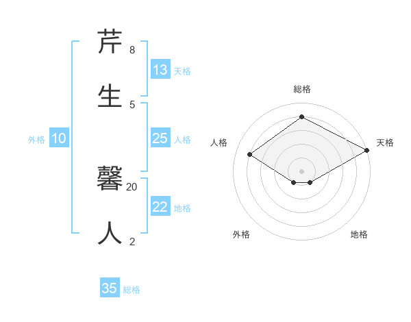 芹生 馨人さんの総格は35画の4点!