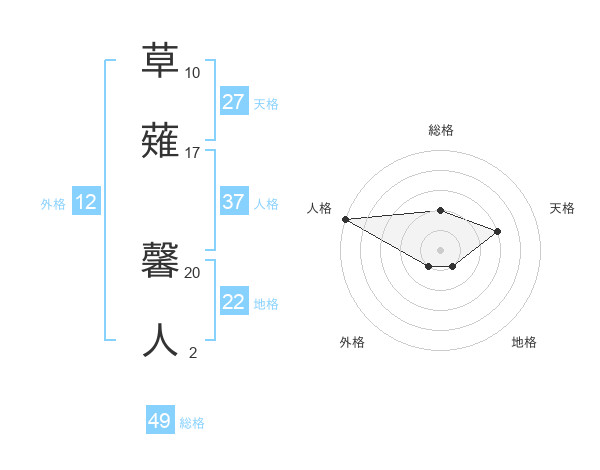 草薙 馨人さんを姓名の画数から五運を鑑定