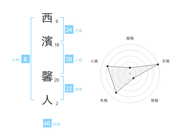 西濱 馨人さんを姓名の画数から五運を鑑定