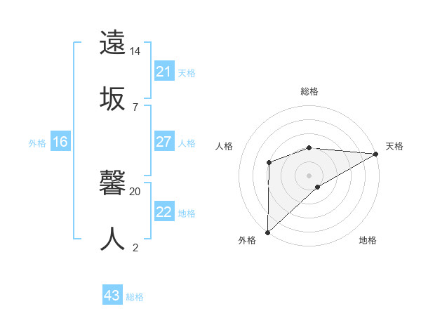 遠坂 馨人さんを姓名の画数から五運を鑑定