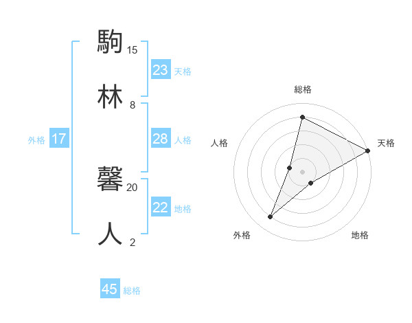 駒林 馨人さんの総格は45画の4点!