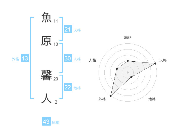 魚原 馨人さんの外格は13画の5点!