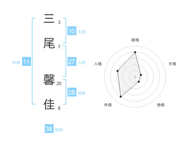 三尾 馨佳さんを姓名の画数から五運を鑑定