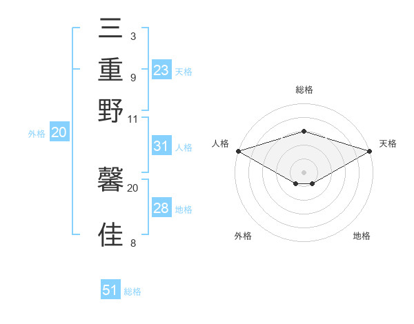 三重野 馨佳さんを姓名の画数から五運を鑑定