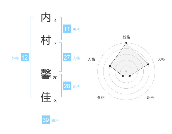 内村 馨佳さんを姓名の画数から五運を鑑定