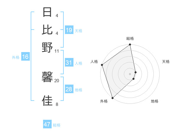 日比野 馨佳さんを姓名の画数から五運を鑑定