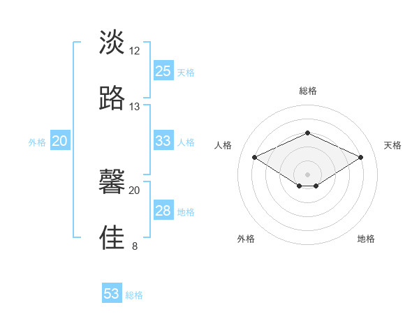 淡路 馨佳さんを姓名の画数から五運を鑑定