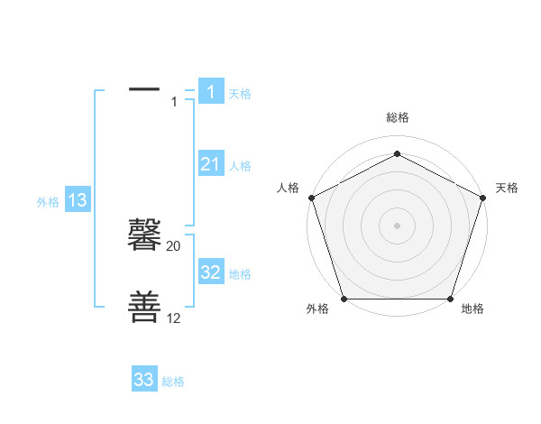 一 馨善さんの外格は13画の5点!