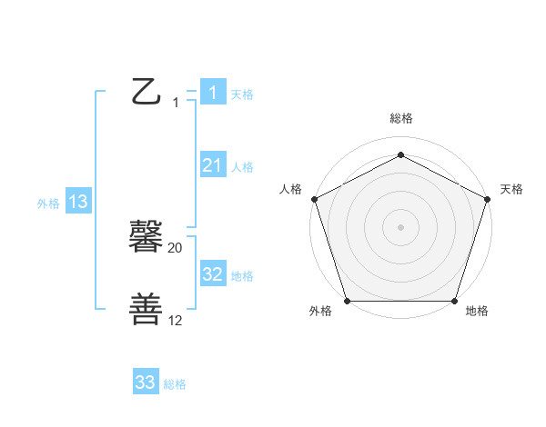乙 馨善さんの総格は33画の4点!