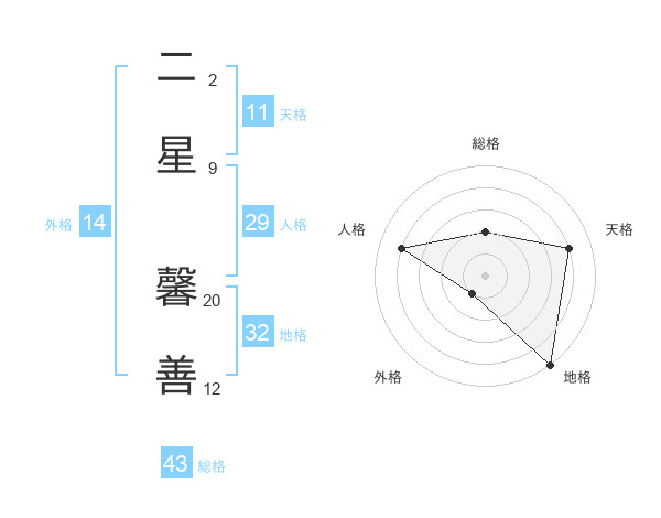 二星 馨善さんの天格は11画の4点!