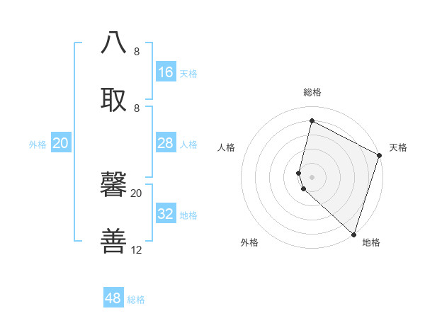 八取 馨善さんの総格は48画の4点!