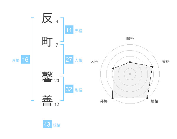 反町 馨善さんの総格は43画の2点!