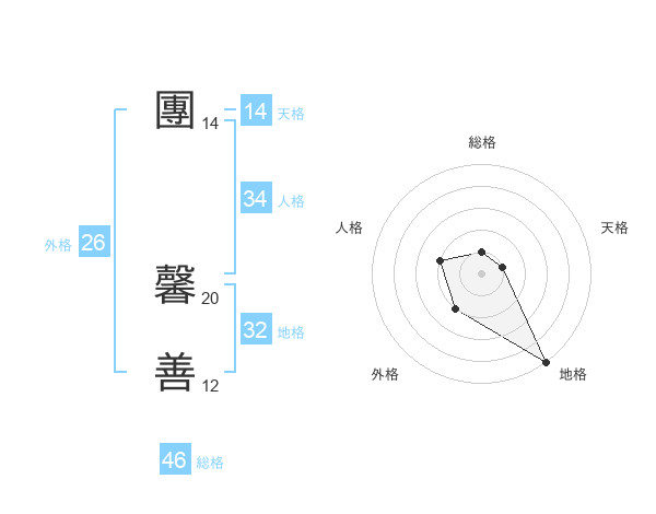 團 馨善さんの地格は32画の5点!