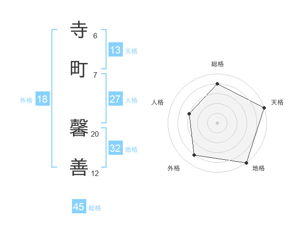 寺町 馨善さんの天格は13画の5点!