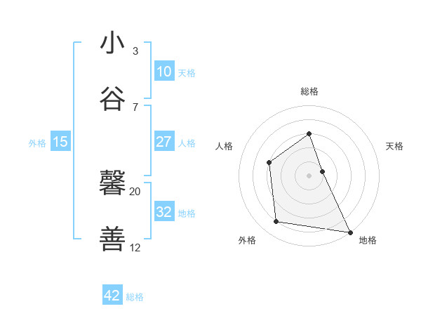 小谷 馨善さんを姓名の画数から五運を鑑定