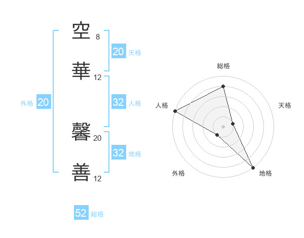 空華 馨善さんの総格は52画の4点!