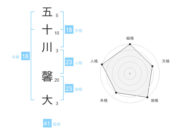 五十川 馨大さんの総格は41画の5点!
