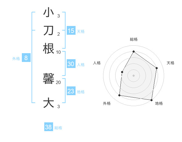 小刀根 馨大さんの総格は38画の4点