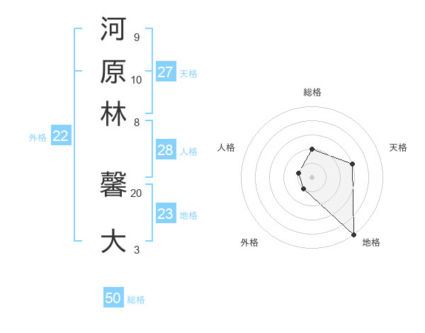 河原林 馨大さんを姓名の画数から五運を鑑定
