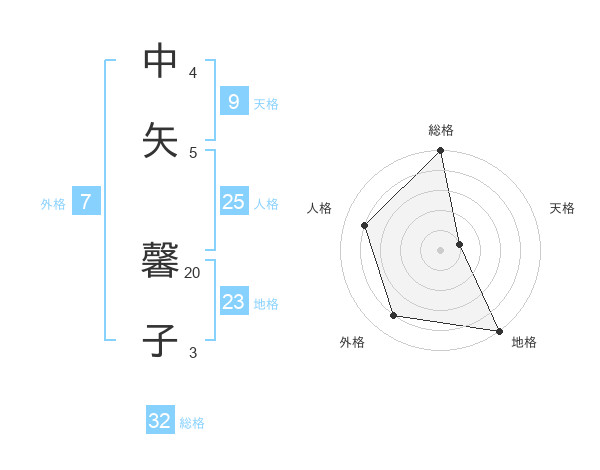 中矢 馨子さんの総格は32画の5点!
