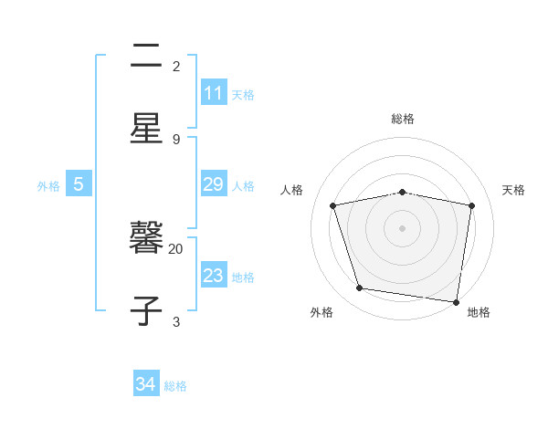 二星 馨子さんを姓名の画数から五運を鑑定