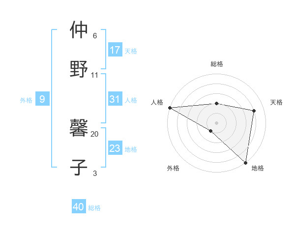 仲野 馨子さんを姓名の画数から五運を鑑定