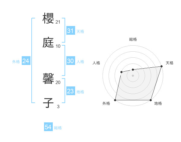 櫻庭 馨子さんの天格は31画の5点!