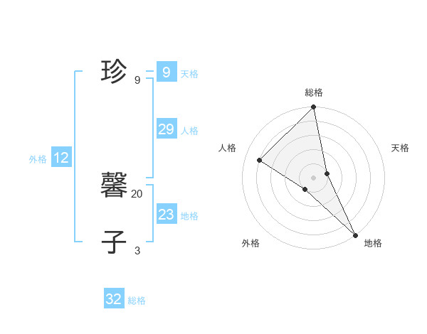珍 馨子さんの外格は12画の1点!
