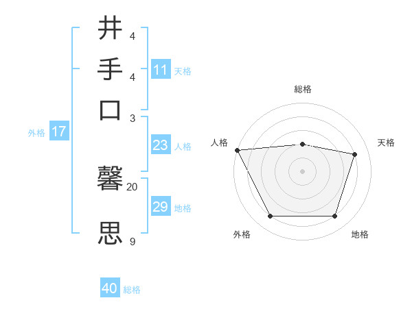 井手口 馨思さんを姓名の画数から五運を鑑定