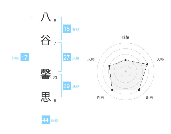 八谷 馨思さんを姓名の画数から五運を鑑定