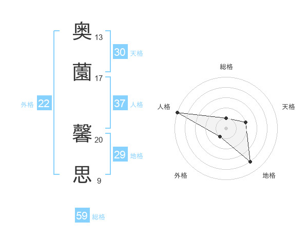 奥薗 馨思さんの総格は59画の1点!