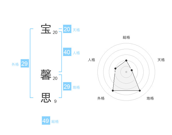 宝 馨思さんの天格は20画の1点!