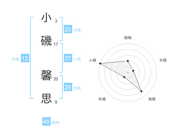 小磯 馨思さんの総格は49画の2点!