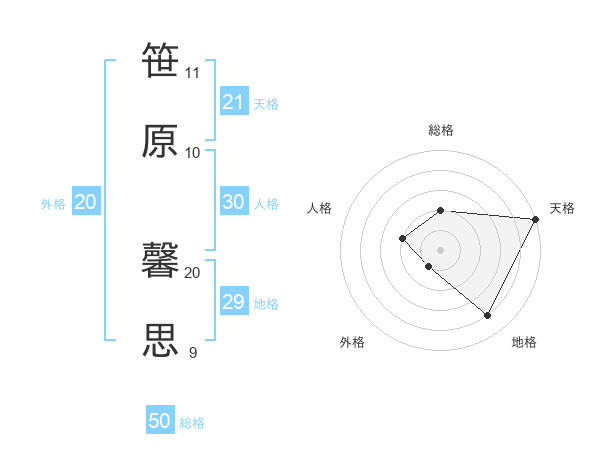 笹原 馨思さんの総格は50画の2点
